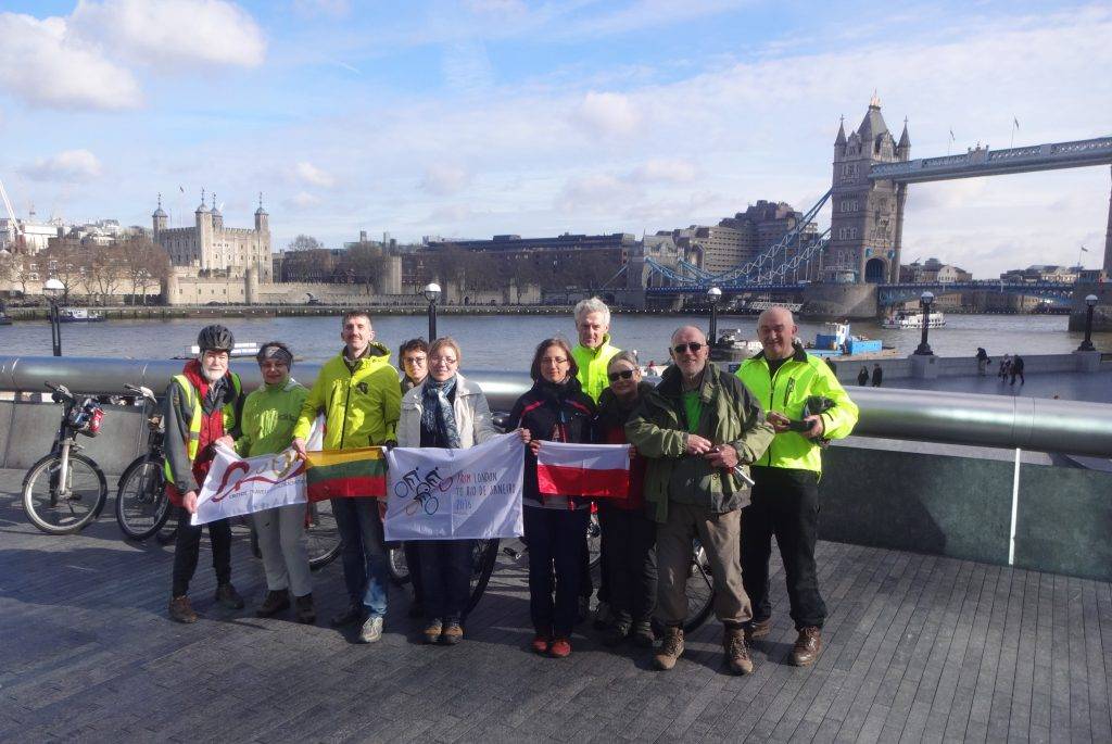 2012 - w tle Tower Bridge, na mecie wyprawy Pekin - Londyn[/caption]Rok 2012 to igrzyska w Londynie, a więc całkiem niedaleko. Najprościej byłoby jechać z Polski do Anglii przez kraje zachodniej Europy. Jednak założenie organizatorów - od samego porządku - są takie, że kolejna wypraw zaczyna się w miejscu, w którym skończyła się poprzednia. Więc start wyznaczono w Pekinie. Była to praktycznie wyprawa dookoła świata, bo wylecieliśmy samolotem z Waszawy na wschód do Pekinu, a wracaliśmy z kierunku zachodniego, z Londynu, okrężając tym samym Ziemię. Po drodze zwiedzaliśmy Chiny, Koreę Południową ("północna" odmówiła nam wiz), Japonię, USA, Irlandię, Walię i Anglię. W sumie 7 krajów, 161 dni i ponad 10.000 przejechanych km.