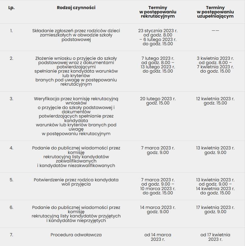 Poniżej zamieszczamy harmonogram postępowania rekrutacyjnego na rok szkolny 2023/2024.