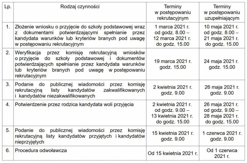 Poniżej zamieszczamy harmonogram postępowania rekrutacyjnego na rok szkolny 2021/2022.
