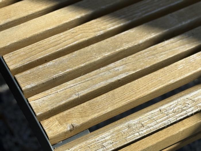 Dodatkowo warstwa lakieru na deskach mocno się starła. Drewno nie zostało dobrze zabezpieczone. Infrastruktura wygląda na mocno zużyta, choć skwer jest można powiedzieć nowy. Chyba nie tak powinien wyglądać obiekt po roku?