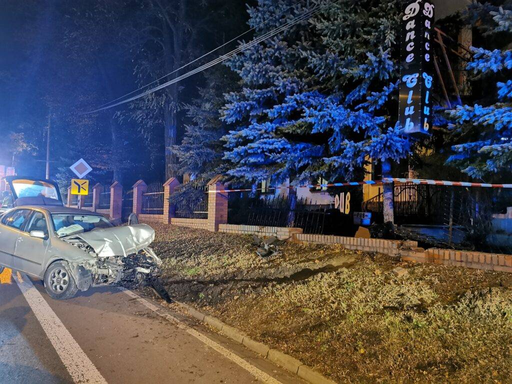 Samochód poruszający się z kierunku centrum uderzył w ogrodzenie hotelu. Zniszczyła całkowicie trzy pola ogrodzenia i dwa murowane słupy.