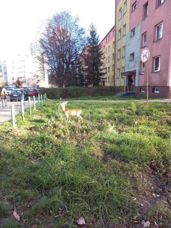 Mała sarenka najwyraźniej nie przejęła się zakazem wyprowadzania zwierząt. Po prostu weszła na podwórko i urządziła sobie ucztę, skubiąc rosnące na trawniku roślinki. Na ''gorącym uczynku” przyłapała ją mieszkanka Jaworzna.
