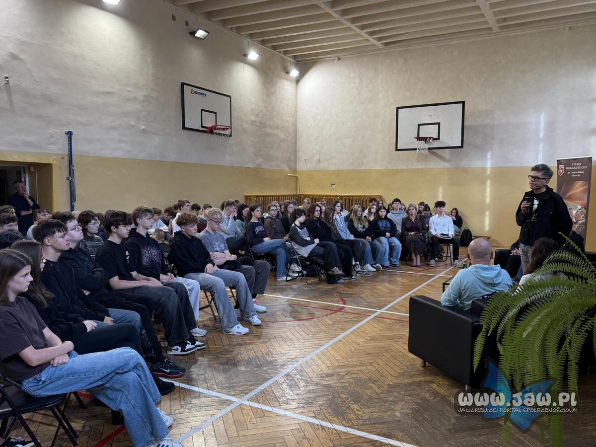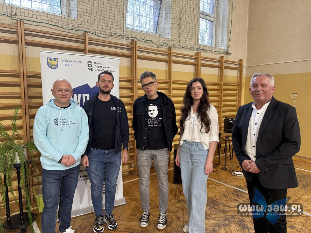 Organizatorem spotkania w II Liceum Ogólnokształcącym w Jaworznie była Śląsko-Zagłębiowska Grupa Edukacyjna. Obecni byli również Sebastian Ciągwa, Giulia Dąbroś i Mateusz Dąbroś oraz dyrektor szkoły Witold Ochman.