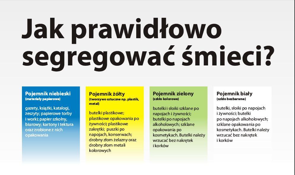 W ostatnim numerze "Co Tydzień" podaliśmy przykłady błędów podczas segregacji na podstawie ogólnych zasad segregacji. Natomiast każda gmina ma swoje szczegółowe zasady, które odpady powinny być lub nie powinny być wrzucane do poszczególnych pojemników i worków służących do segregacji.