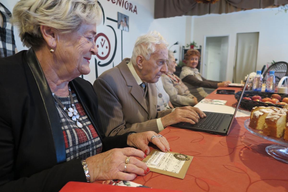 Seniorzy z Fundacji Mój Czas dla Seniora z zaciekawieniem nad laptopem[/caption]Internet jest fajny …