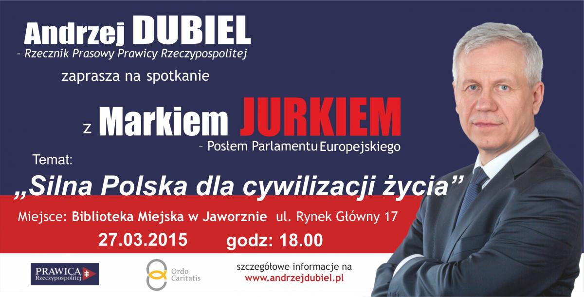 Już dziś spotkanie z Markiem Jurkiem - posłem do Parlamentu Europejskiego, prezesem Prawicy Rzeczypospolitej.