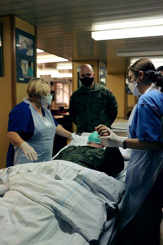 - Żołnierze Wojsk Obrony Terytorialnej mogą być doskonałym wsparciem dla mocno obciążonego pracą personelu medycznego, zarówno pełniąc funkcję ”systemu wczesnego ostrzegania” w przypadku pogorszenia się stanu pacjenta jak i służąc swoja pomocą przy codziennych czynnościach pielęgnacyjnych. – podkreśla prowadzący kurs, ratownik medyczny i zastępca kierownika Centrum Symulacji Medycznej, Kamil Barglik