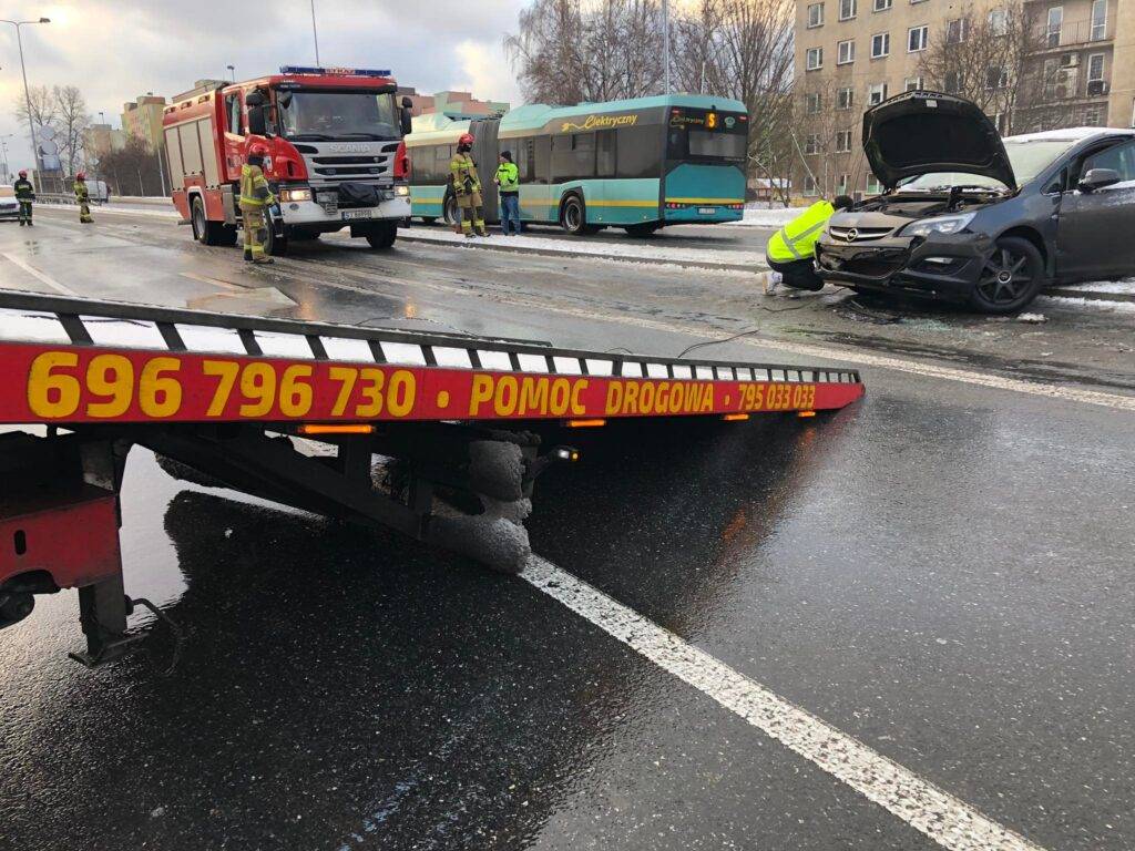 Do pierwszego zdarzenia doszło ok. godz. 07:15 na skrzyżowaniu ul. Radwańskich i Reja. Samochód marki Opel nie ustąpił pierwszeństwa busowi jadącego w kierunku centrum miasta.