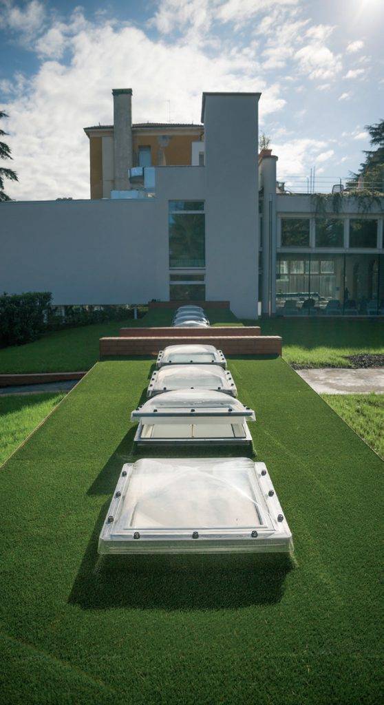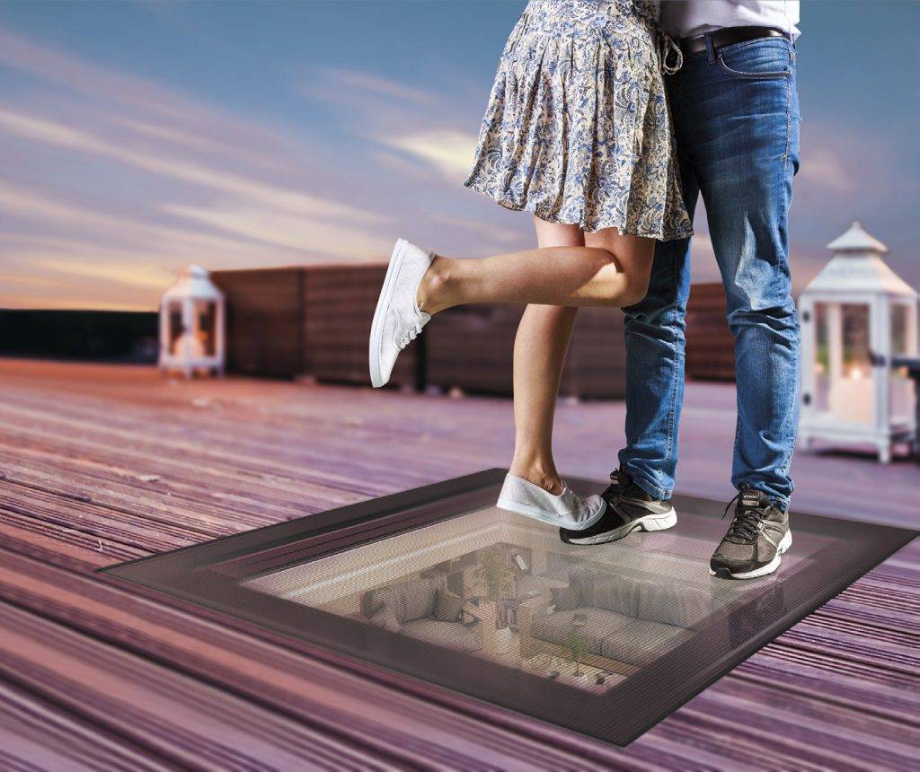 Specjalna, wzmocniona konstrukcja okna do dachów płaskich DXW pozwala na swobodne poruszanie się po nim. Maksymalne obciążenie przenoszone przez okno to 500 kg/m2.[/caption]