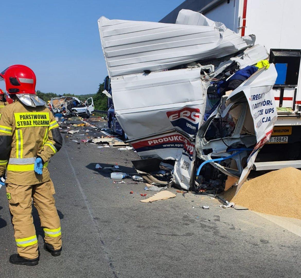 - Doszło do zderzenia busa z ciężarówką. Kilka osób jest rannych, jednej nie udało się uratować. Na miejscu lądował śmigłowiec LPR.  - informuje Superekspres