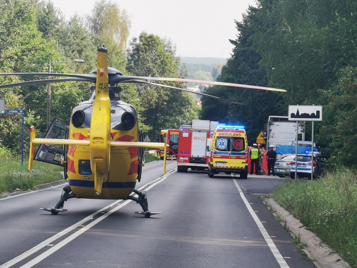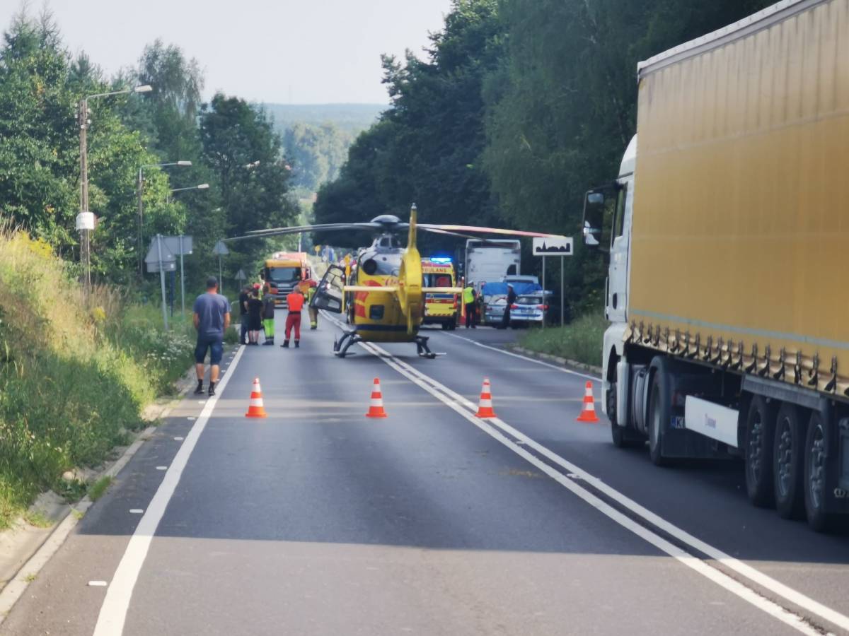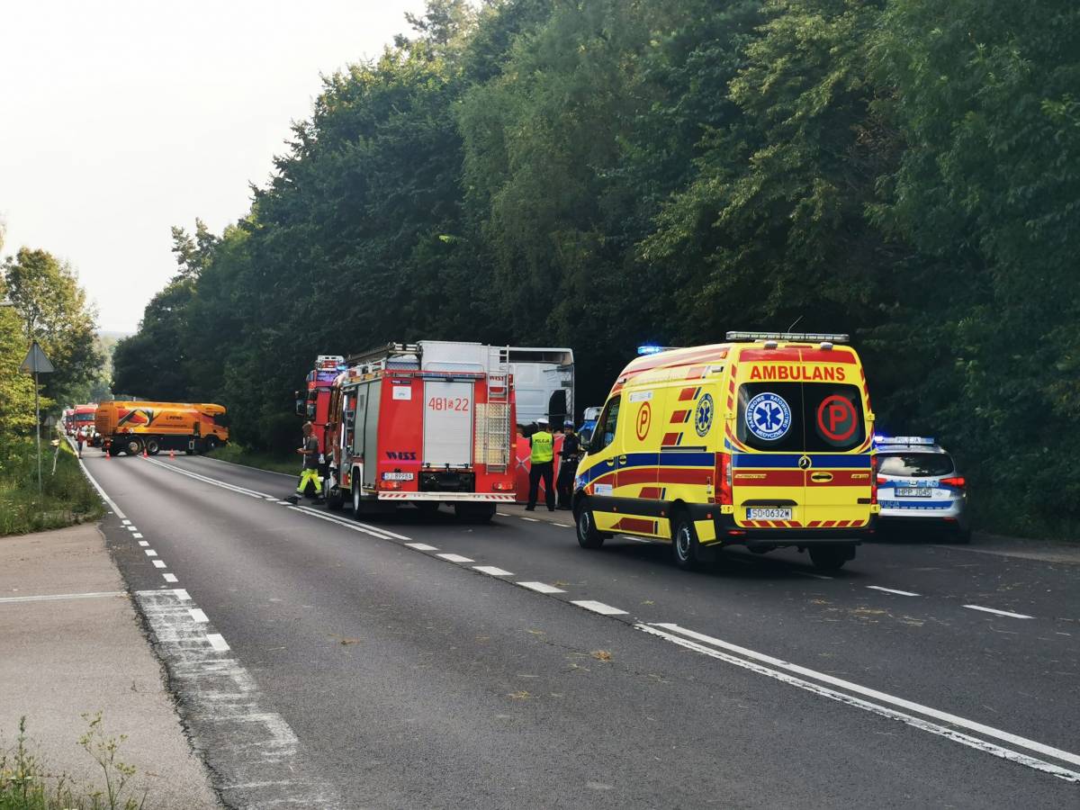 AKTUALIZACJA (16:15): Wypadek okazał się śmiertelny. Droga będzie zablokowana co najmniej przez godzinę. Na miejscu ma się pojawić wkrótce prokurator.