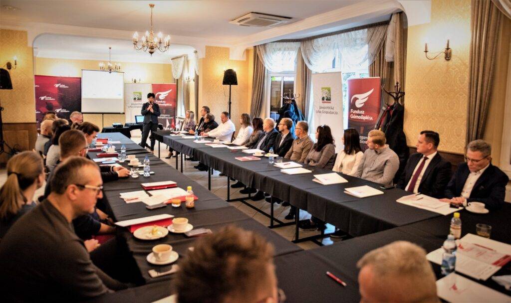 Dyrektor Wydziału Współpracy Zagranicznej Zoriana Czajkowska przybliżyła przedsiębiorcom formy wsparcia, jakie oferuje Fundusz Górnośląski S.A. dla sektora MŚP w zakresie wsparcia ekspansji zagranicznej śląskich firm. Samorząd województwa reprezentowała Maria Materla, Radna Sejmiku Województwa Śląskiego, która informowała o mechanizmach wsparcia przedsiębiorców w województwie. Gospodarzem spotkania był prezes Jaworznickiej Izby Gospodarczej Mateusz Łętowski. Wśród gości znalazł się Marcin Kozik Prezes Ekoenergia Silesia S.A., spółki wspierającej przedsiębiorców.