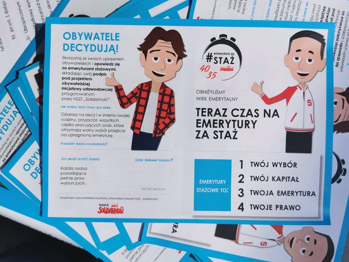 Solidarność zbiera podpisy pod obywatelskim projektem obniżenia wieku emerytalnego