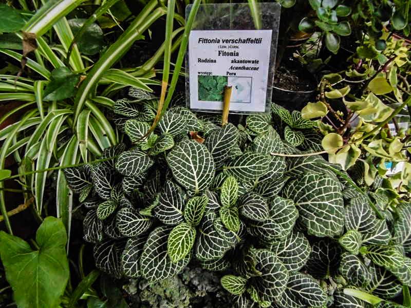W końcu weszliśmy do środka. Fotografowałem wybrane rośliny. Na początku Fittonia verschaffeltii.
