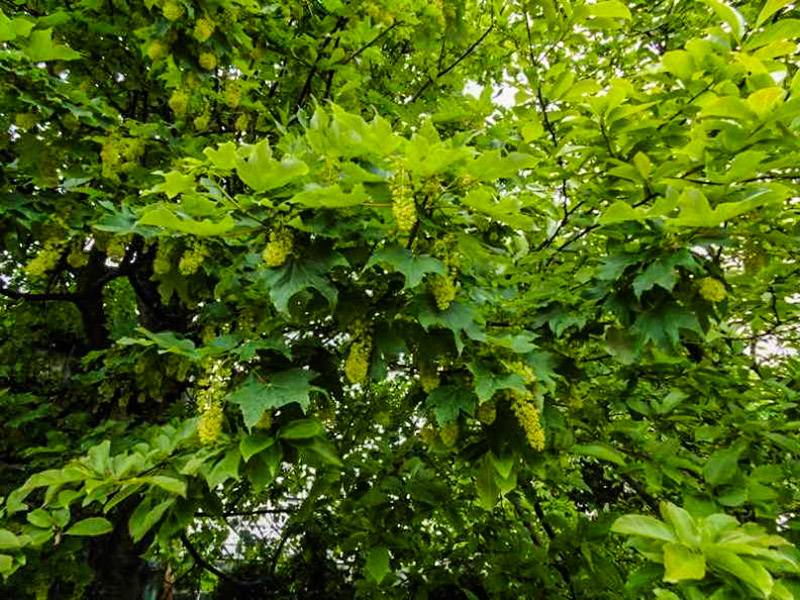 A na pożegnanie egzotyki kwitnący, krajowy klon jawor - Acer pseudoplatanus.