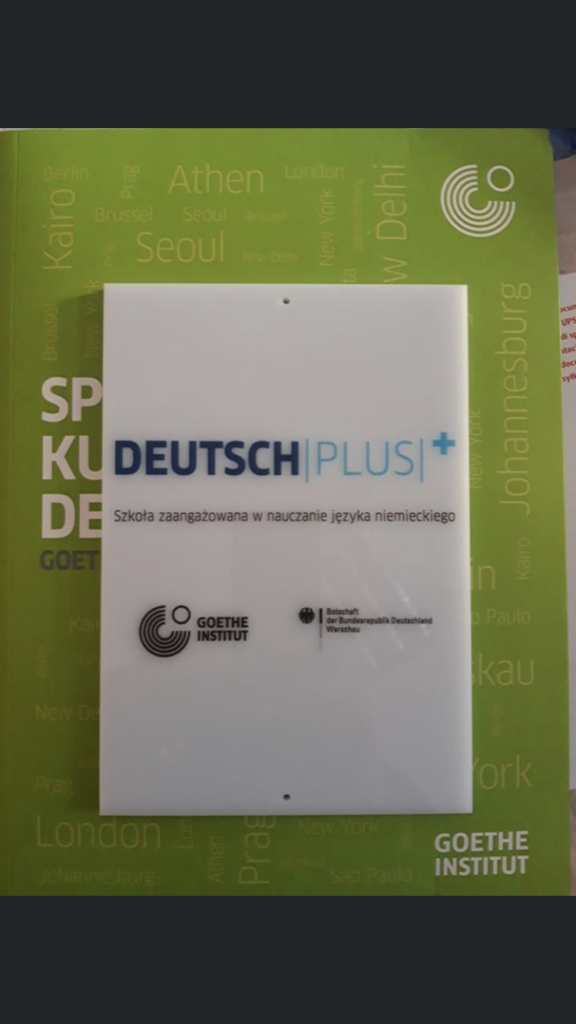 Deutsch Plus to jeden z wiodących projektów Goethe Institut w Warszawie. Jego celem jest promocja nauki języka niemieckiego. Siłą tego przedsięwzięcia jest wzajemne wsparcie, wymiana doświadczeń i współpraca między szkołami, które są objęte patronatem Goethe Institut. Placówka ta w różnorodny sposób wspiera szkołę w nauczaniu niemieckiego.
