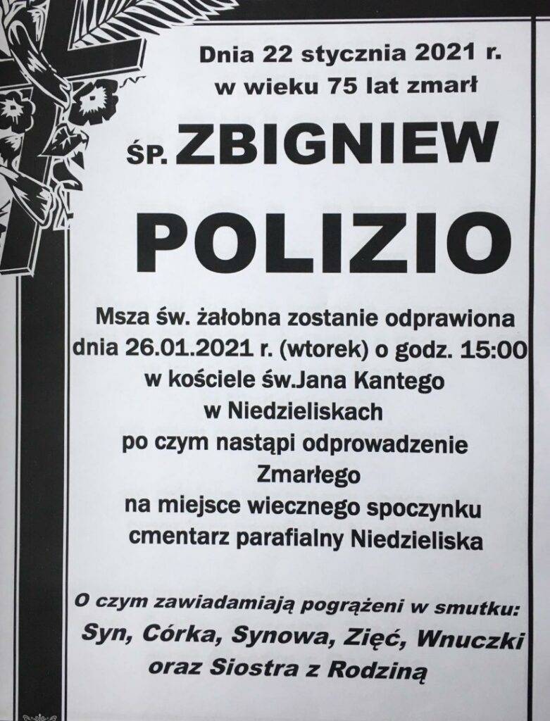Śp. Zbigniewa Polizio pożegnamy we wtorek 26 stycznia