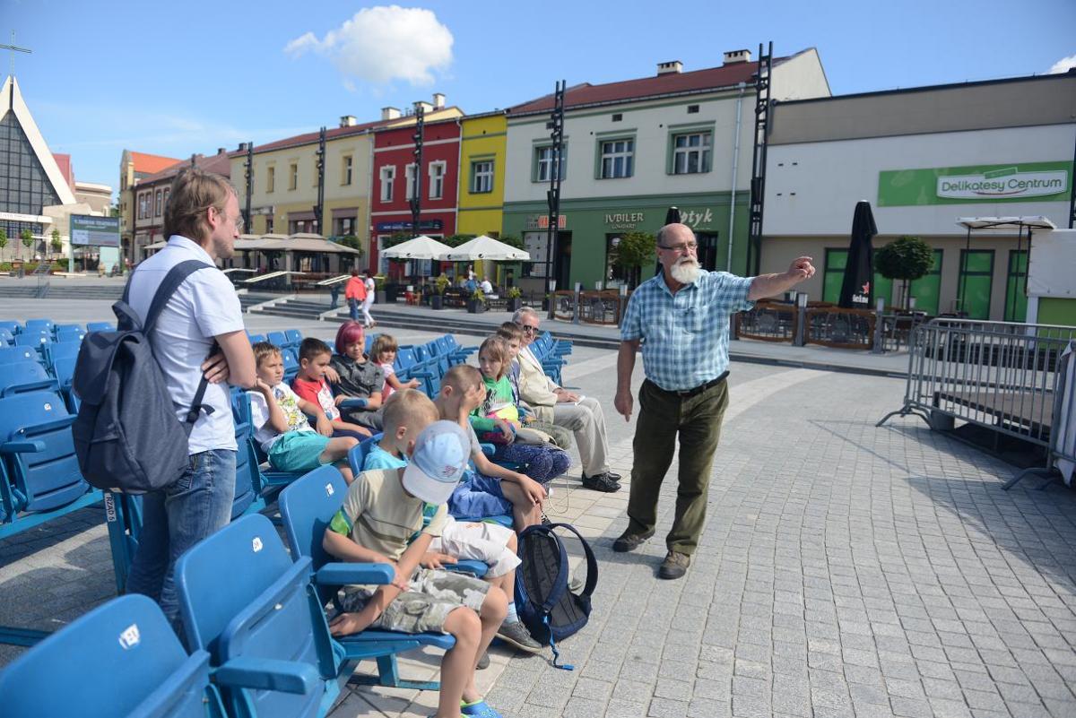 Po raz kolejny Muzeum Miasta Jaworzna zorganizowało „Spacer po rynku”. Tradycyjnie uczestników spaceru oprowadzał Bartłomiej Cieszyński, który opowiadał o historii rynku i jego okolic. W dzisiejszym spacerze w głównej mierze wzięły udział dzieci, które z bardzo dużym zainteresowaniem przysłuchiwały się opowieściom pana Bartłomieja. To nie jedyna atrakcja przygotowana na wakacje przez Muzeum Miasta Jaworzna. Więcej o można przeczytać na stronie muzeum.jaw.pl.