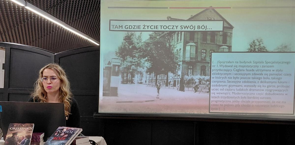 Podczas spotkania autorka odpowiadała na pytania. Przygotowała się do napisania powieści, czytając choćby czasopisma z dawnych lat.