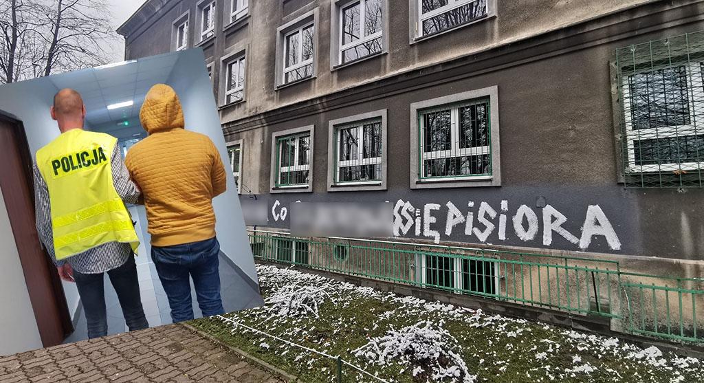 Na początku miesiąca Dyrekcja Szkoły Podstawowej nr 1 w Jaworznie zgłosiła uszkodzenie elewacji budynku szkoły. Sprawca trzykrotnie w kilkudniowych odstępach czasu pisał na murach placówki treści wulgarne pod adresem osób publicznych i partii politycznych. Kryminalni ustalili i zatrzymali sprawcę, okazał się nim 35-letni mieszkaniec naszego miasta. Dodatkowo podczas zatrzymania w mieszkaniu mężczyzny policjanci znaleźli ponad 150 gramów marihuany. Mężczyzna po nocy spędzonej w policyjnym areszcie usłyszał dziś zarzuty zniszczenia mienia i posiadania narkotyków. Za to przestępstwo kodeks karny przewiduje do 5 lat pozbawienia wolności. Mężczyzna musi się liczyć również z obowiązkiem pokrycia kosztów związanych z przywróceniem elewacji szkoły do poprzedniego stanu.
