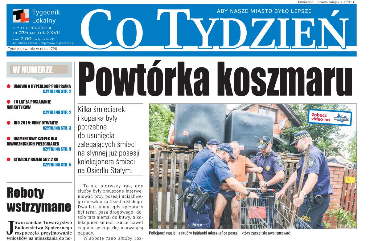 „Powtórka koszmaru. Kilka śmieciarek i koparka były potrzebne do usunięcia zalegających śmieci na słynnej już posesji kolekcjonera śmieci na Osiedlu Stałym” - czytamy na pierwszej stronie dzisiejszego wydania gazety „Co tydzień”. Poniżej piszemy o kłopotach Chińczyków w Jeleniu.