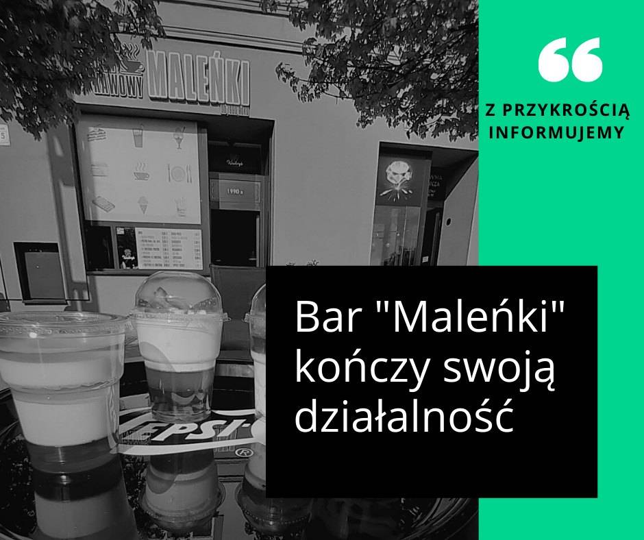 "Niestety, pokonało nas szereg trudności. Nie mamy dobrych informacji. Wkrótce będziemy zmuszeni zamknąć lokal i zakończyć działalność Maleńkiego. Dziękujemy Wam wszystkim, którzy towarzyszyliście nam, wspieraliście nas w trudnych chwilach. O szczegółach poinformujemy wkrótce." - napisali na profilu społecznościowym Maleńkiego.