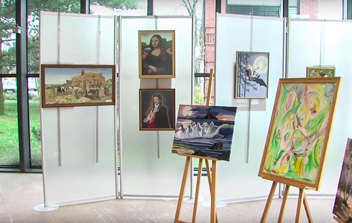 Stowarzyszenie z siedzibą w Sosnowcu działa od 32 lat, zrzesza ok. 60 osób - malarzy, literatów, muzyków i panie od haftu artystycznego. Przywieziono 23 prace - hafty, fotografie i obrazy olejne. Żeśmy prace te grzecznie pochwalili dopytując dlaczego właśnie te, domniemując, że to te najlepsze. Pan wiceprezes