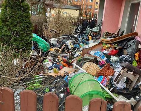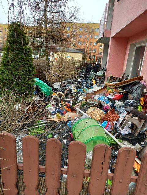 "Dzień dobry, piszę do was ponieważ jako mieszkańcy bloku przy ulicy Piłsudskiego mamy problem z jednym z mieszkańców. Mężczyzna ten zbiera śmieci, stare rzeczy, makulaturę i prawdopodobnie zepsute jedzenie. Wszystkie te rzeczy składuje na ogródku i w mieszkaniu, które jak da się zauważyć przechodząc obok jest w jeszcze gorszym stanie ze względu na to, że mężczyzna wchodzi do mieszkania przez okno balkonowe. Takie śmieci na zewnątrz i w mieszkaniu powodują poważne zagrożenie epidemiologiczne, pożarowe. Boimy się, że na wiosnę ze względu na delikatną zimę zalęgnie się robactwo. Prosimy o pomoc. Rozmowy z tym mężczyzną nie przynoszą rezu ltatów. Informację tą przekazuję także do Spółdzielni Mieszkaniowej Górnik".