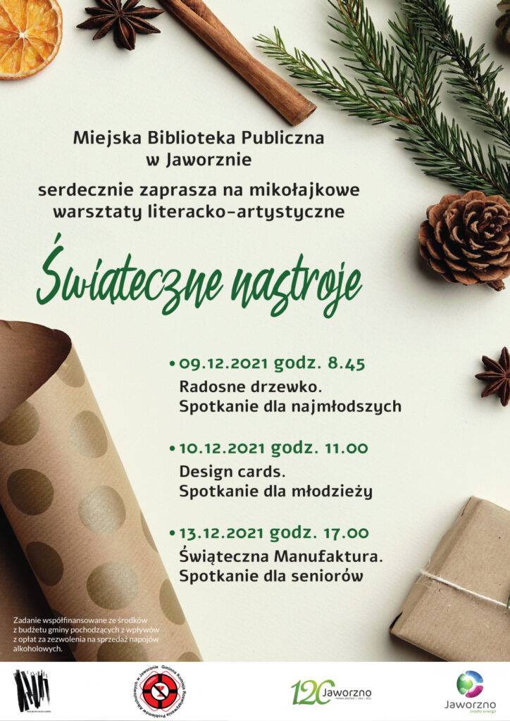 Miejska Biblioteka Publiczna zaprasza do udziału w projekcie "Świąteczne nastroje", który nawiązując do tradycji corocznego kolędowania przy choince, wzbogacony zostanie warsztatami artystycznymi.