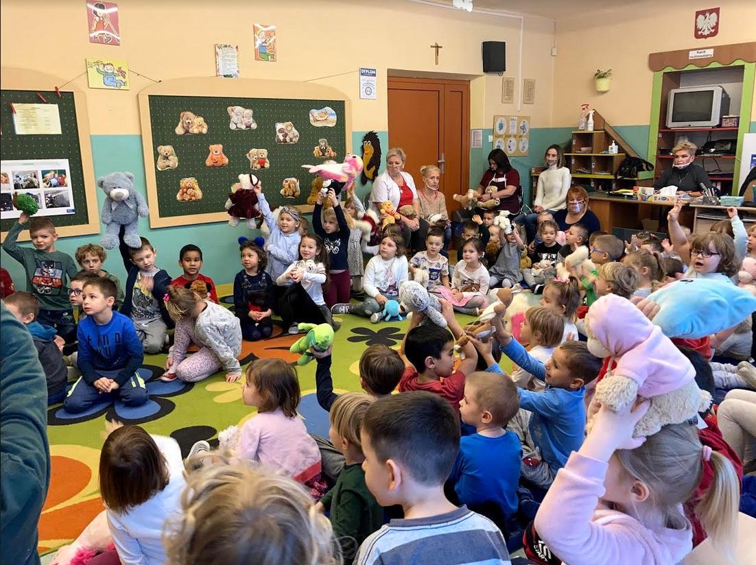 W ramach obchodów „Światowego Dnia Pluszowego Misia” dzieci uczestniczyły we wspólnej zabawie. Dzieci w tym dniu przyszły do przedszkola ze swoimi pluszowymi ulubieńcami - misiami. Na dzieci czekało wiele atrakcji – przedstawienie, konkursy, zagadki, wspólne piosenki, tańce i pląsy. W tym dniu wszystkie dzieci świetnie się bawiły, a na koniec otrzymały dyplom przyjaciela pluszowego misia oraz słodki, misiowy upominek. Ten dzień w przedszkolu był pełen uśmiechu i dobrej zabawy. Wiele radości sprawiło dzieciom zaprezentowanie swojego misia i możliwość zabawy z pluszowym przyjacielem.