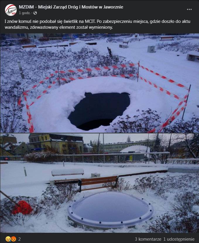 Ciężko wyjaśnić, dlaczego akurat świetliki komuś przeszkadzają i są dewastowane. Na szczęście jednak jest monitoring, więc służby szybko powinny dojść do tego, kto jest sprawcą. No, chyba że tym razem za szybko osądzamy i okażę się, że to np. zalegający ciężki śnieg był sprawcą tego zniszczenia, ale ta teoria jest trudna do uwierzenia, jednak nie niemożliwa.