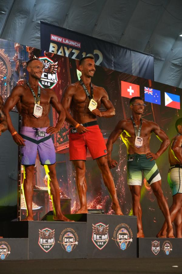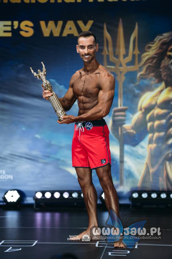 Złoty medal za kategorię Open Men’s Physique, no i srebro za kategorię Men’s Physique mężczyzn 30 plus. Jest też taki dodatkowy medal. Co prawda tu nie było podium, bo to była już liga pro, więc wykorzystałem tę szansę dzięki tej karcie i postawiłem się też koło zawodowców. Natomiast podium było obsadzone przez również mistrzów świata, więc myślę, że to jest to cel na kolejny rok albo na kolejne lata.