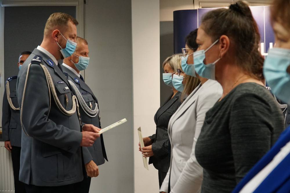 Podczas uroczystego apelu Komendant Miejskiej Policji w Jaworznie mł. ins. Piotr Uwijała wraz ze swoim zastępcą podinsp. Sławomirem Zagrobelnym złożyli na ręce pracowników podziękowania. Ponadto wyrazili wdzięczność za trud i zaangażowanie jakie w pracę wkładają pracownicy cywilni - w jaworznickiej komendzie.
