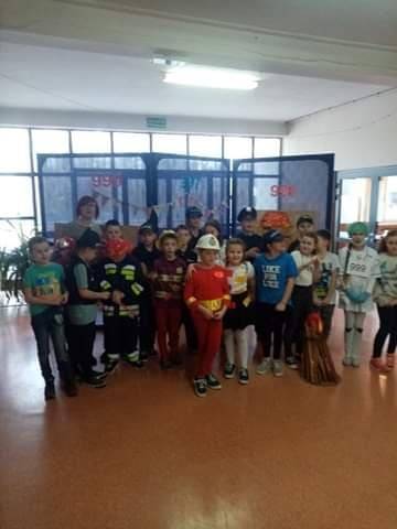 i życia; Podczas podsumowania tego przedstawienia przez panią dyrektor uczniowie wykazali się szeroką wiedzą na powyższy temat. Znają odpowiedzi na pytania: jak wezwać karetkę pogotowia czy straż pożarną ? Jaki numer wybrać w przypadku, gdy znajdziemy się w niebezpieczeństwie? Uczniowie z dużym zaangażowaniem i chęcią uczestniczyli w przedstawieniu, który przebiegał we wspaniałej atmosferze nauki i zabawy.