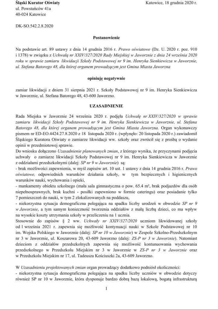 Pełne uzasadnienie opinii Śląskiego Kuratora Oświaty znajdziecie poniżej: