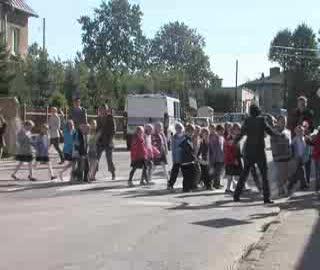 Po spotkaniu w szkole policjanci zabierają dzieci na spacer, aby w praktyce pokazać im, jak należy zachowywać się na drodze.
