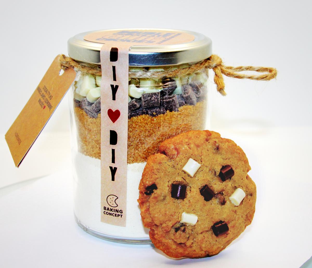 Jeśli powyższa sytuacja nie jest Ci obca lub po prostu lubisz mieć asa w rękawie na każdą ewentualność, z pewnością spodoba Ci się propozycja Baking Concept. To firma, która przywraca prawidłowe znaczenie frazie „łatwy przepis na ciasteczka” i zamienia marzenia każdego łasucha w rzeczywistość. Ciastka do samodzielnego wypiekania Baking Concept to specjalnie opracowane mieszanki starannie wyselekcjonowanych półproduktów. Wszystkie suche składniki są już odmierzone i ułożone warstwowo w słoiku, dzięki czemu nie musisz martwić się brakiem wagi, niewymiarową szklanką czy wielkością łyżki do odmierzania. Wystarczy dodać do nich podstawowe produkty, które każdy ma w domu, całość wymieszać, uformować ciasteczka, wstawić je do piekarnika i gotowe! Z takiej mieszanki możesz przygotować aż 12-15 pysznych ciasteczek, które nie tylko zachwycą Cię smakiem i łatwością przygotowania, ale również brakiem konserwantów i sztucznych dodatków.