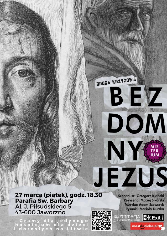 Artyści krakowskiego Teatru Exit przyjadą do Jaworzna z poruszającym misterium drogi krzyżowej "Bezdomny Jezus". Wydarzenie to będzie połączeniem modlitwy, muzyki na żywo oraz teatru. Będzie również okazją, aby wesprzeć hospicjum dla dzieci i dorosłych na Litwie.