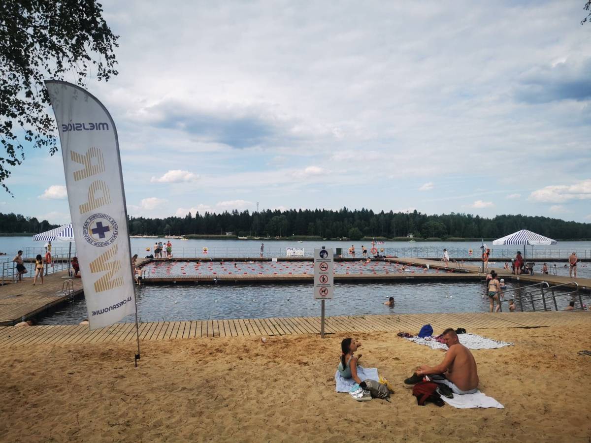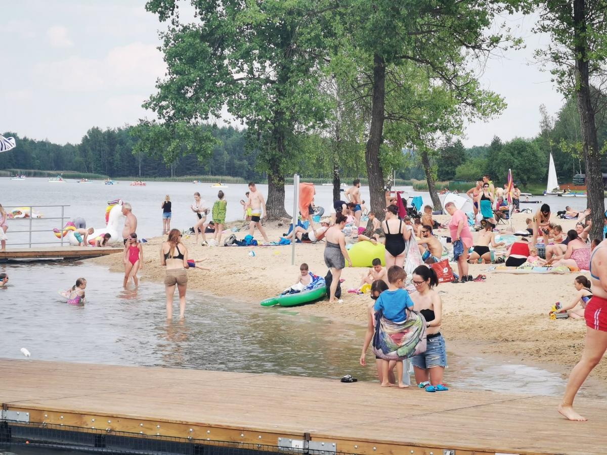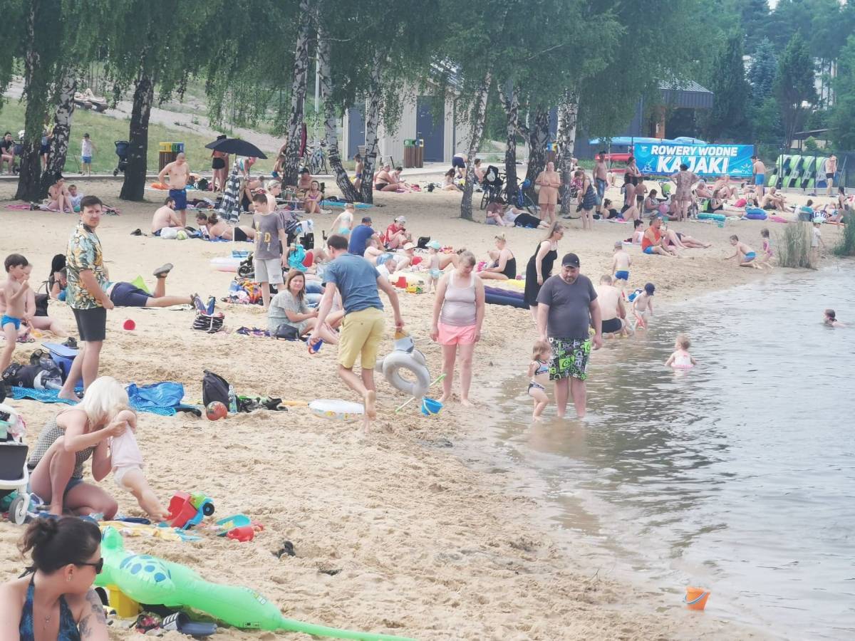 Chętnych do odpoczynku na świeżym powietrzu, jak widać, nie brakuje: mieszkańcy spacerują, przesiadują nad wodą, jeżdżą na rowerach czy opalają się. Plaże nad zalewem są zapełnione.