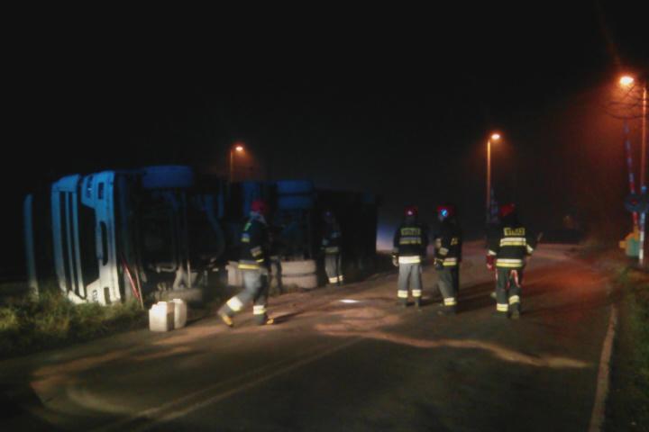 Około godziny 21:00 samochód ciężarowy wypadł z szykany na przejeździe kolejowym.