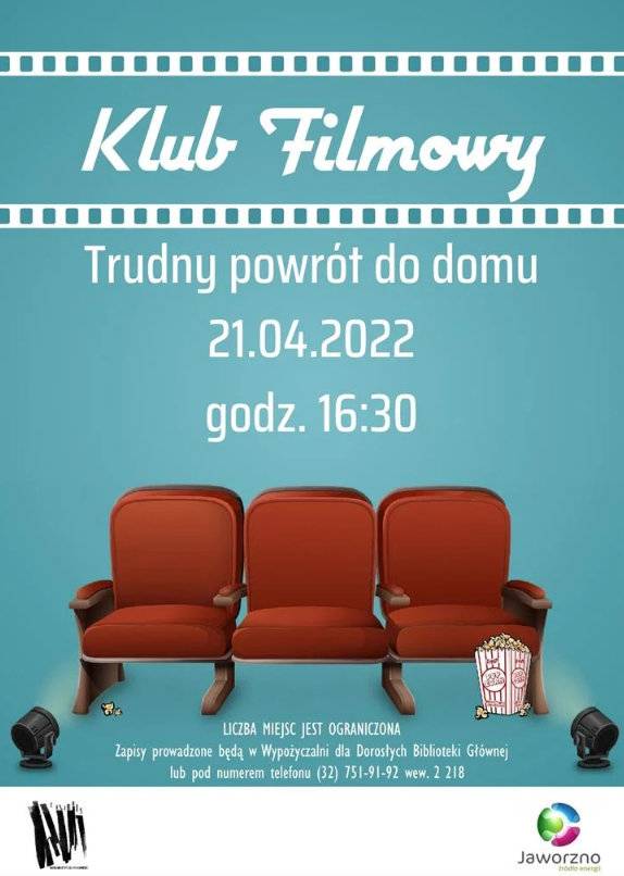 Spotkanie Klubu Filmowego odbędzie się w czwartek 21 kwietnia w Miejskiej Bibliotece Publicznej w Jaworznie o godz. 16:30.