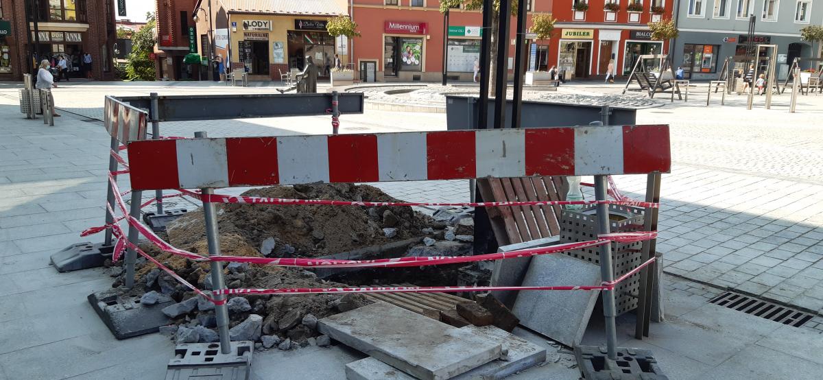 Na rynku w centrum Jaworzna trwa remont - przeprowadzane są prace konserwacyjne związane z oświetleniem.