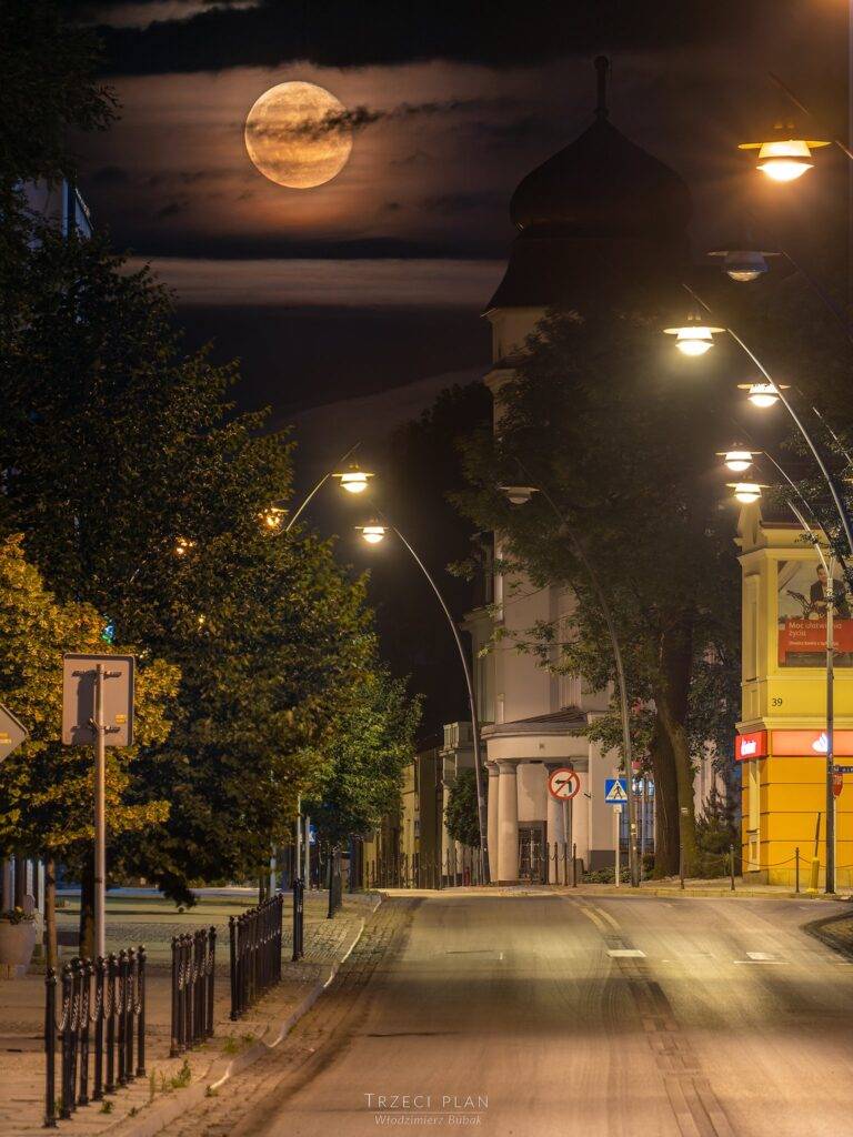 Fotografia wykonana w centrum Jaworzna, 15 czerwca o godzinie 23:35.