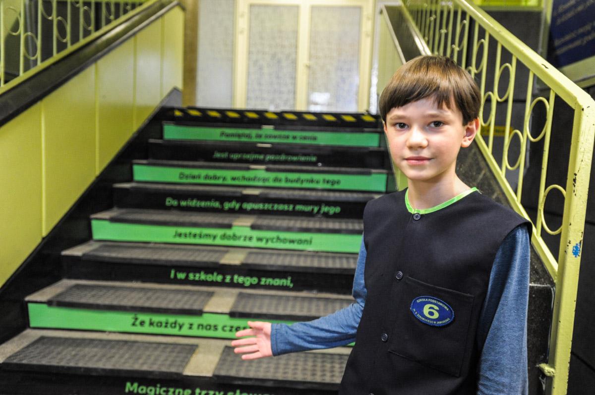 Pomysł fajny ale nie wiem czy taki oryginalny: http://wiadomosci.wp.pl/kat,1019407,title,W-lubonskim-gimnazjum-uczniowie-ucza-sie-historycznych-dat-wchodzac-po-schodach,wid,17933684,wiadomosc.html?ticaid=1169ef http://www.legio24.pl/schody-ktore-ucza-w-jablonowskiej-podstawowce/ http://www.radziszow.edu.pl/index.php?option=com_content&view=article&id=867:czego-moe-nauczy-czowieka-chodzenie-po-schodach&catid=32:spprojektyedukacyjne&Itemid=211 I chyba jeszcze kilka innych szkół w Polsce to ma.