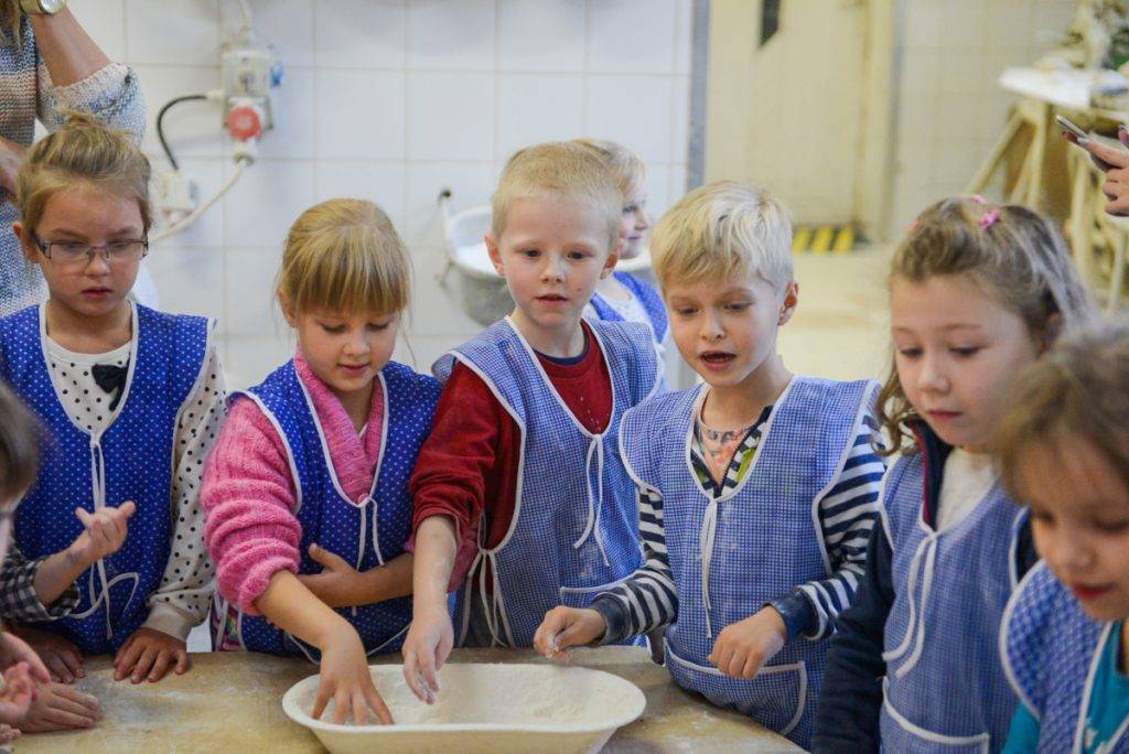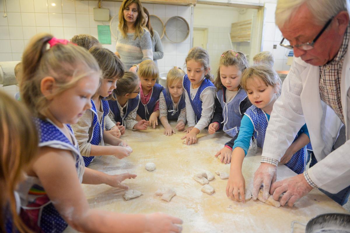 Już po kilku chwilach dzieci doskonale wiedziały jakich składników potrzeba do przygotowania pieczywa. Z ogromnym zaciekawieniem pytały o to, jak funkcjonują poszczególne maszyny. Później otrzymały ciasto i mąkę i wypiekały bułki.
