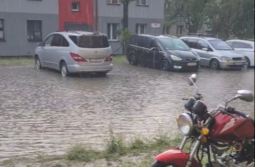 Ul. Tuwima w Jaworznie, której remont zakończył się zaledwie kilka miesięcy temu, w efekcie dzisiejszej ulewy zamieniał się w rwący potok.