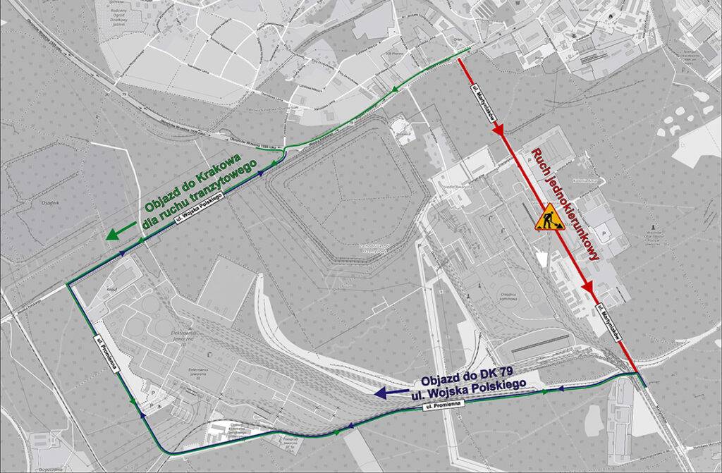 Prace będą odbywały się ma ulicy Martyniaków od skrzyżowania z ulicą Wojska Polskiego do ulicy Promiennej - wprowadzona zostanie tam nowa organizacja ruchu. W pierwszym etapie prac zamknięty będzie prawy pas ruchy, później - lewy. Utrzymany zostanie ruch jednokierunkowy na ulicy Martyniaków od ulicy Wojska Polskiego w kierunku ulicy Promiennej.
