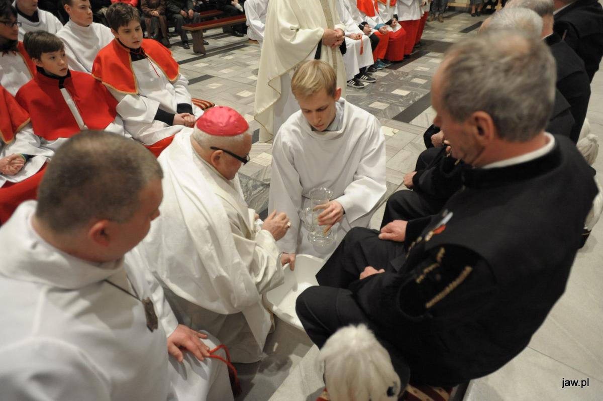 W kolegiacie pw. św. Wojciecha i św. Katarzyny tradycyjnie biskup Piotr Skucha przewodniczył uroczystej mszy św., wygłosił Słowo Boże i obmył dwunastu górnikom stopy.