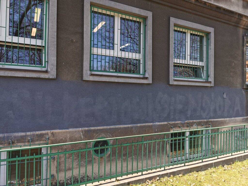 Informowaliśmy na początku tygodnia o akcie wandalizmu polegającej na namalowaniu obraźliwych napisów na szkole. Po kilku dniach napisy zostały zamalowane.