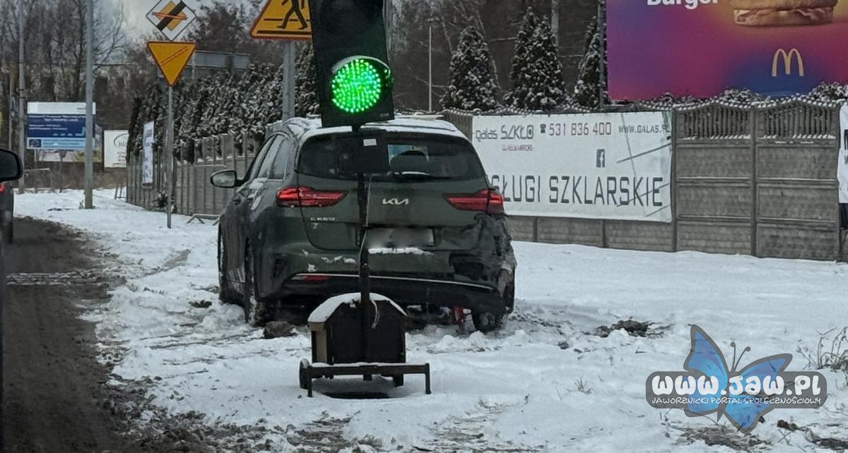 Do kolizji doszło w środę 31 grudnia około godziny 10:00 na wysokości sygnalizacji świetlnej, która steruje ruchem wahadłowym na rondzie. Kierowca Audi najechał na tył samochodu Kia i wpadł do przydrożnego rowu.